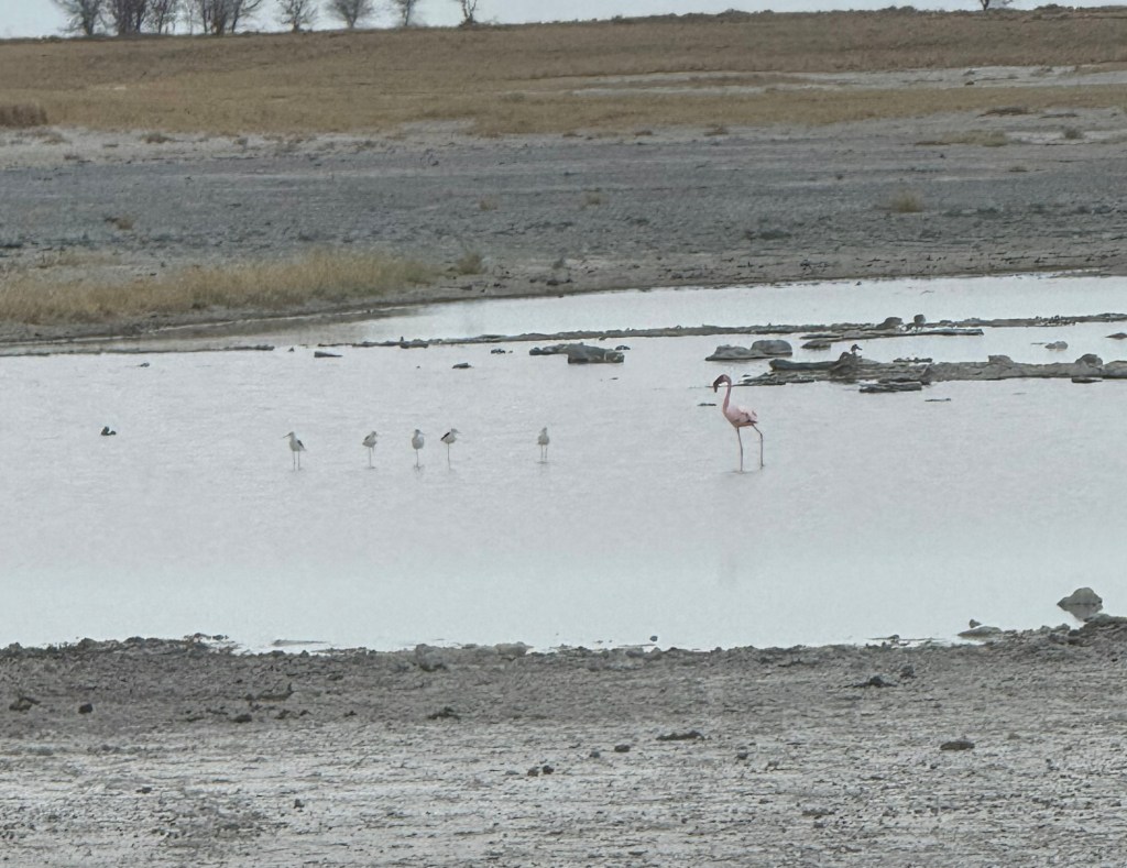 After leaving Maun we headed 300 kms east in Botswana to Nata Sanctuary. This is a community run bird sanctuary that usually hosts 1000’s of flamingos and pelicans at the start of the rainy season. The rains fill the Sowa pan with ankle deep water like an inland sea as far as the eye can see. Unfortunately the rains hadn’t quite started yet so the pan was vast and dry. Still very very beautiful. We did see one flamingo who had set up home in a puddle… poor guy either got left behind when the flamingo migration left last year or he’s jumped the gun and arrived early.