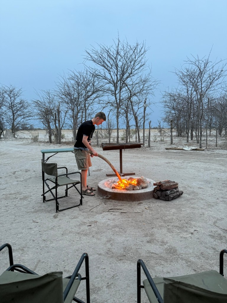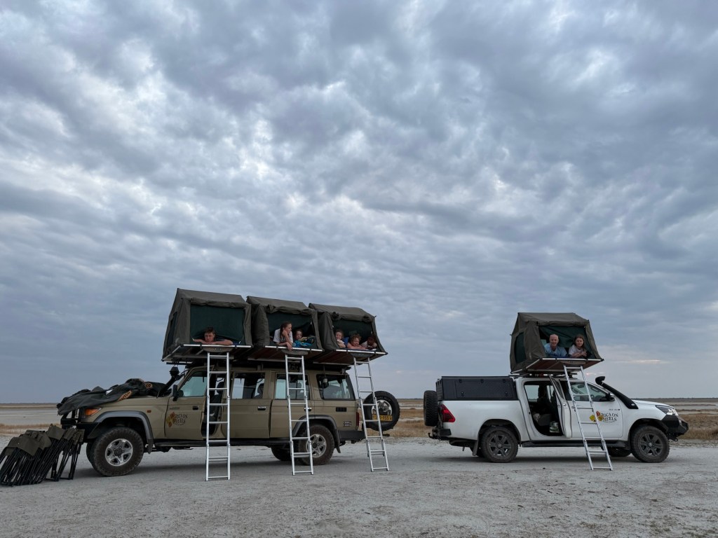 We headed back to camp, cooked and ate dinner around the fire and watched a beautiful distant lightning display on the horizon to the north. What was awesome to watch from a distance became a dramatic change of pace as it smashed into us with a vengeance. Matt and Doug secured the campsite while the rest buckled down in the nearly 100% waterproof rooftop tents. Doug nearly tripping over a black backed jackal, as he focused his headtorch at the ground to avoid the omnipresent scorpions.