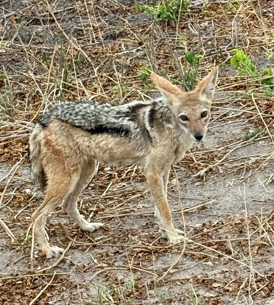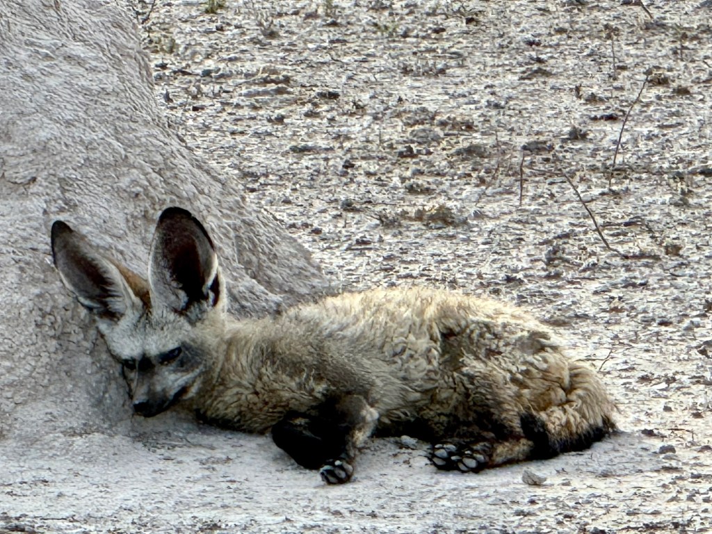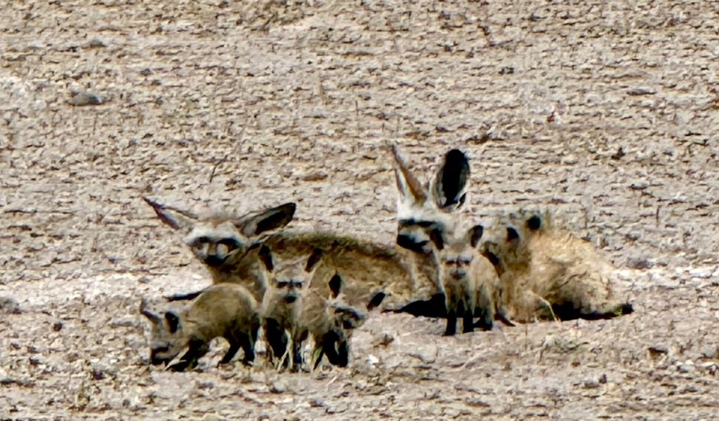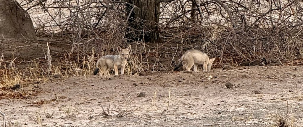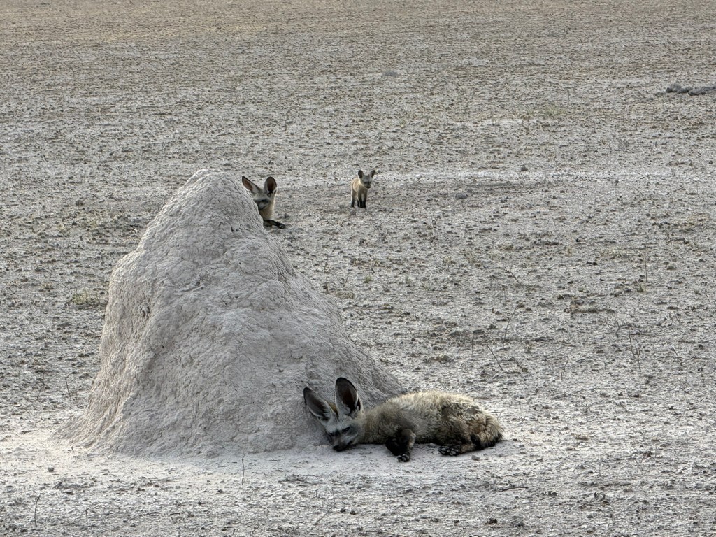 The next day was beautiful blue sky and we drove at dawn to find baby bat eared foxes playing around out of their burrows. All the animals on the pan were the super hardy species who could handle the dry, dusty environment at this time of the year. It was incredible to understand how they were surviving.