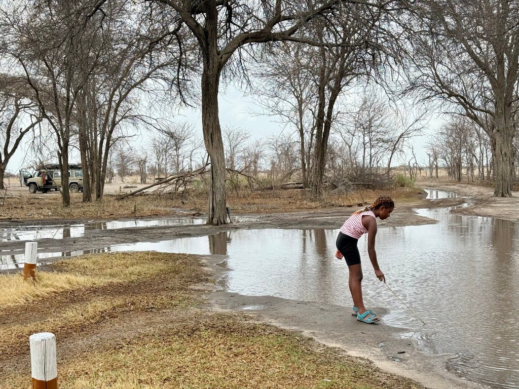 We got blasted. And we woke to a watery wonderland that, overnight, replaced the dusty dry drought-stricken landscape. The herds of wildebeest, zebra and springbok had started to arrive, we saw jackal babies, zebra babies, a giraffe baby and more bat eared foxes playing around babies. The transformation could not be more dramatic. Doug earned his ‘mud driving diploma’ on the morning drive.