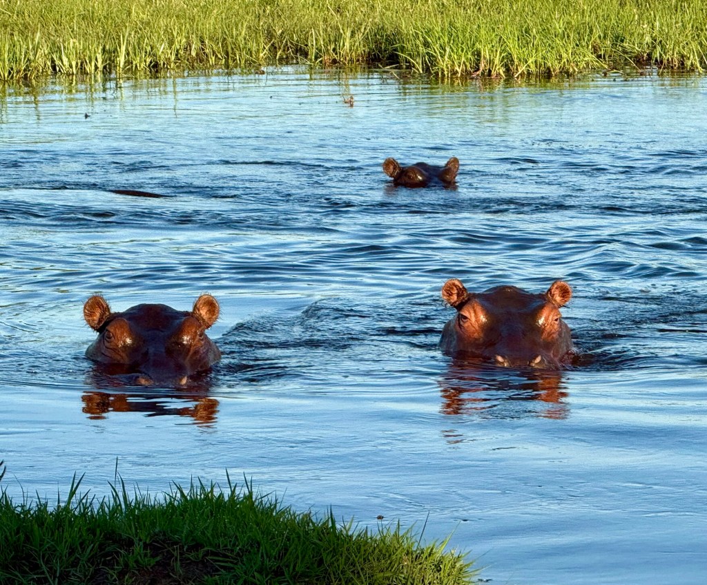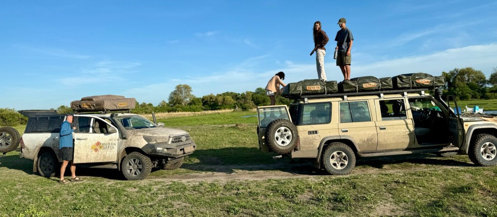 As we got further north to the rivers and delta we dealt with hippos and crocs, in and out of the water – including one hippo we didn’t tell Doug about before he followed us through a ‘bonnet-deep’ river channel we had to drive through.