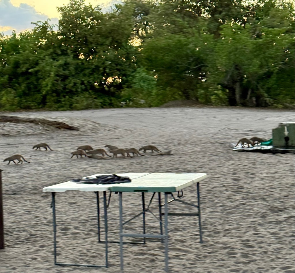 We made it to kasane yesterday afternoon, and enjoyed a swim in the pool and a good meal. Doug and Emma have the world’s greatest Chobe riverfront campsite, with resident monkeys, warthog babies, and beautiful bushbuck. And the Prichards are in a couple of rooms enjoying aircon.