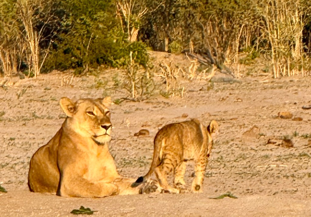 I’d told the kids seeing one lion was about a 90% chance if we worked hard at the driving and spotting. Instead we saw different groups of lions every day. Big males in pairs out hunting, prides of females with cubs active in the morning. And one face to face encounter with a big lioness for Leanne coming out of the toilet block at Kwai that sent her back in with Fenn. Eventually they called out for help and Matt and Doug came in the Ute to get them.